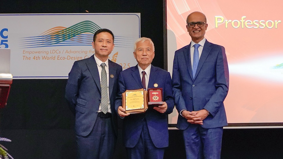 3月26日,2025年世界生态设计大会在泰国曼谷开幕,江苏省工业设计学会名誉理事长、江南大学设计学院张福昌教授荣获“世界设计贡献奖”。联合国最不发达国家技术库执行干事迪奥达特?马哈拉吉先生、世界生态设计组织总干事应放天教授为张福昌教授颁奖,对其在设...